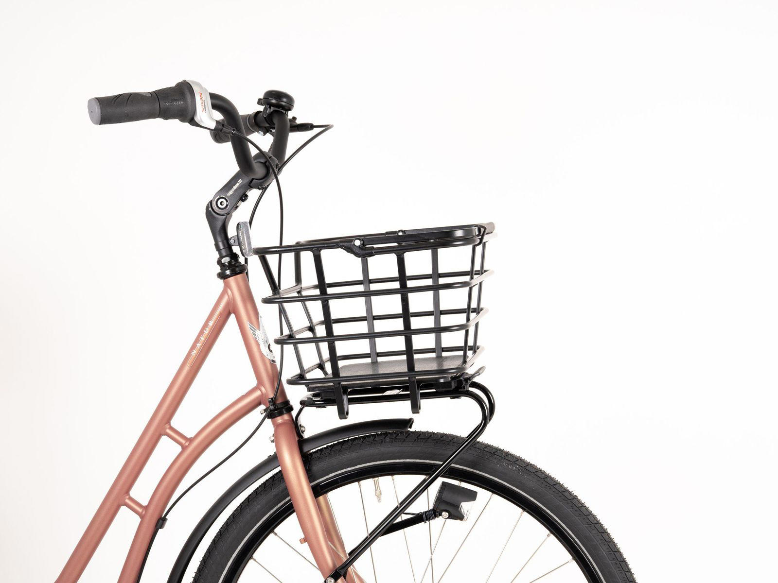 Tilava, monikäyttöinen kori pyörään. Korissa on mukavat kantokahvat.