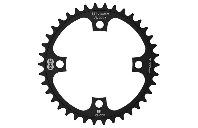 Tämä KMC:n eturatas on suunniteltu varta vasten Bosch-moottorilla varustettuihin sähköpyöriin, ja sen BCD (Bolt Circle Diameter) on 104 mm. Eturattaassa on 38 hammasta ja se sopii 1/2 tuuman levyisiin sekä 1/8 tuuman paksuisiin ketjuihin. Ratas on valmistettu alumiinista ja sen paksuus on 3 mm.