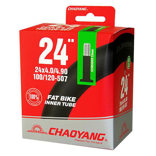 Laadukas ja kestävä Chaoyang 24" sisäkumi fatbike-polkupyörään. Polkypyörän sisärenkaan koko on 100/120-507. Fatbike pyörän sisärengas on varustettettu 33 mm autonventtiilillä.