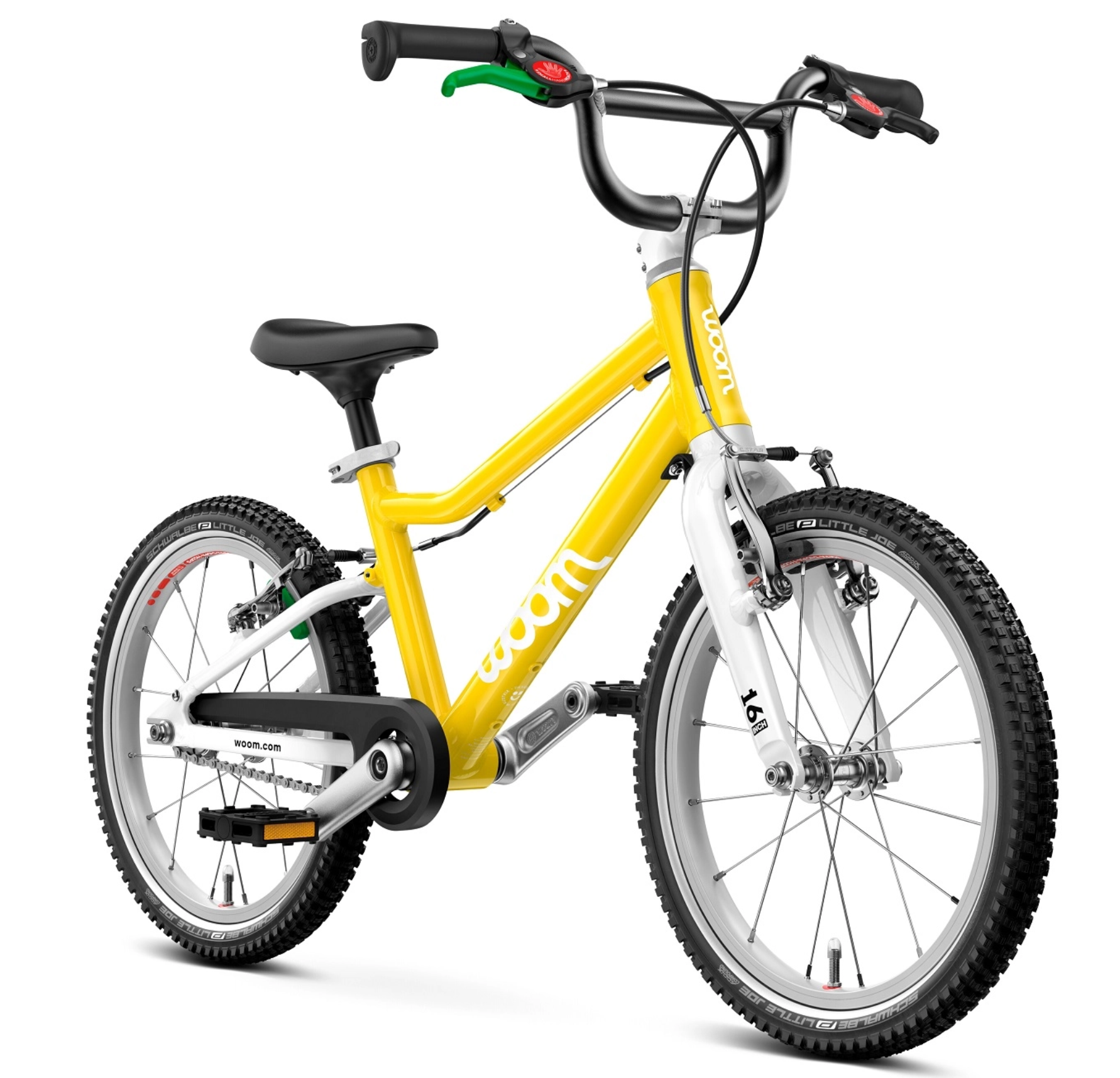 Woom GO 3 on ihanteellinen ensimmäinen polkupyörä 4–6-vuotiaille, joka yhdistää vakaan ja helppokäyttöisen muotoilun kevyen alumiinirungon kanssa. 16” renkaat, matala runko ja pitkä akseliväli takaavat turvallisen ajokokemuksen. Paino vain 5,4 kg, joten se on kevyt ja helposti hallittava. Mini V -jarrut, ergonominen satula ja rullaavat Schwalbe Little Joe -renkaat lisäävät ajomukavuutta ja turvallisuutta.